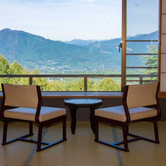 緑豊かな高台に佇み、客室からの眺望は赤城山や谷川連峰、遠くは日光連山を望む大パノラマ。