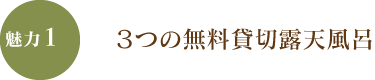 大人気の3箇所ございます無料貸切露天風呂は、空いていれば何度でも無料でお楽しみいただけます!